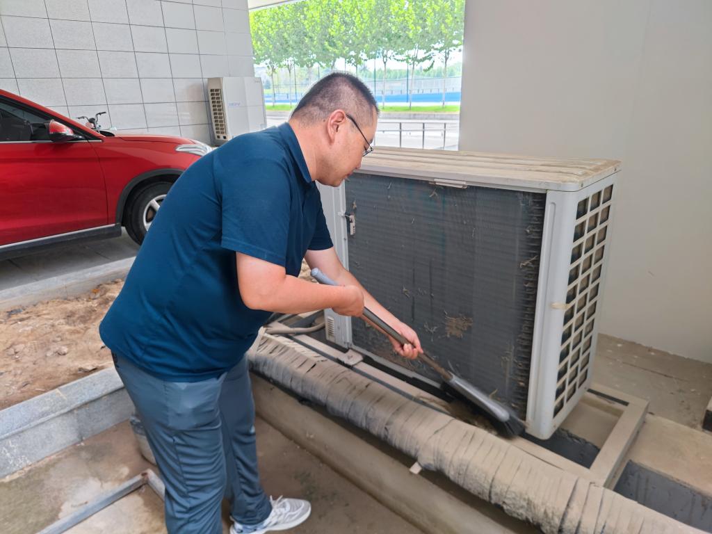 尤为值得一提的是,针对高温天气可能对制冷设备带来的挑战,工程师们更是主动出击,对手球馆核心机房等关键区域的空调外机进行清洗,有效保障了制冷设备的运行效率,为机房设备营造了稳定适宜的运行环境。这一系列扎实有效的举措,不仅彰显了信息化建设处对师生学习生活环境的高度重视,更体现了团队成员们勇于担当、甘于奉献的职业精神。