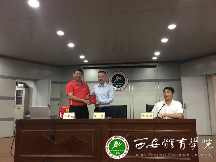 周里院长出席报告会,并向张阜新教练颁发了客座教授聘书,他感谢张导对西体竞技体育的支持,同时希望今后进一步加强合作与交流。