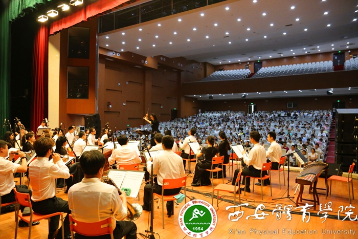 本网讯 6月27日19:00,由教育部、文化部、财政部主办,陕西省教育厅、中央民族乐团和我院承办的2016年“高雅艺术进校园”——中央民族乐团音乐会在我院体育艺术综合馆三楼上演。副院长白跃世亲临现场观看,纪委书记赵军致开幕词。各系(部)师生近千人共同欣赏了这场精彩的视听盛宴。