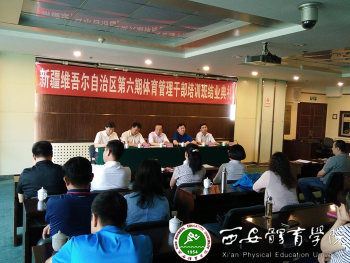 本网讯 由国家体育总局人事司对口援助、新疆自治区体育局主办、西安体育学院承办的新疆维吾尔自治区第六期体育管理干部培训班,经过20天紧张有序的培训,6月5日在我院顺利结业。新疆自治区体育局局长祖龙·克里木、西安体育学院党委书记吴长龄、副院长陈彦与参训学员一道出席了结业典礼。