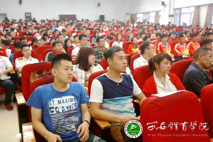 吴长龄同志以《感悟体育 热爱体育 争做行家里手》为题,以“体育是一种实力,体育是一种艺术,体育是一种文化,体育更是一种精神”为内容展开了演讲。吴书记讲到:因工作的关系,他和体育界有影响力的高层人士及明星人物有过近距离的交流交谈,借这个机会为大家介绍了“我所亲眼见到的杨树安、我所亲眼见到的何振梁、我所亲眼见到的陈祖德、我所亲眼见到的郎平、我所亲眼见到的邓亚萍、我所亲眼见到的姚明”及李娜、贝利等中外体育明星,并以大家身边的西体学子今年考取上海体育学院博士生考试第一名的黄悦同学为例,号召广大学生热爱体育专业,感受体育魅力,争做行家里手,立志成长、成才,成就体育梦想,并寄语青年学生要爱校、荣校、护校、兴校,精学一技之长,修德笃学,为实现中华民族伟大复兴这一中国梦贡献自己的力量。