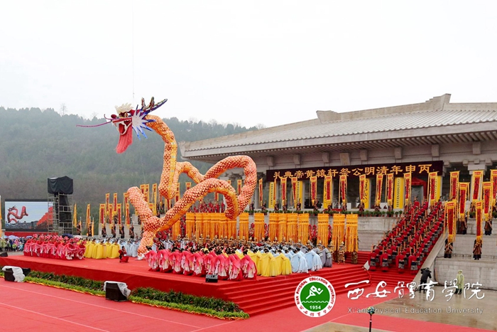 本网讯 在丙申(2016)清明公祭轩辕黄帝典礼告祭乐舞部分,由我院团委选派的体育艺术系48名男生与其他两所高校学生参加了《乐祭》和武舞部分的演出。乐舞告祭向来是公祭典礼上备受瞩目的亮点,由《序礼》、《乐祭》、《云祭》、《龙祭》主题段落串联组成。待到乐舞告祭环节开始,来自我院体育艺术系的表演者手捧祭品,缓缓的走向中心祭台,至诚至虔地向观众展示初献奉香、亚献进爵、终献献果的“三献”祭礼仪程,其余的手持钺盾,以现代的方式解读和演绎“武以象功”,表达了中华儿女对始祖慎终追远,高山仰止之情和盛世中华国家大治繁荣昌盛的精神蕴涵,在《龙祭》段落中,一条56米长的“中华龙”盘旋、腾跃升空,飞向蓝天,演绎“龙驭在天”,呈现“同祀共仰”之盛典。