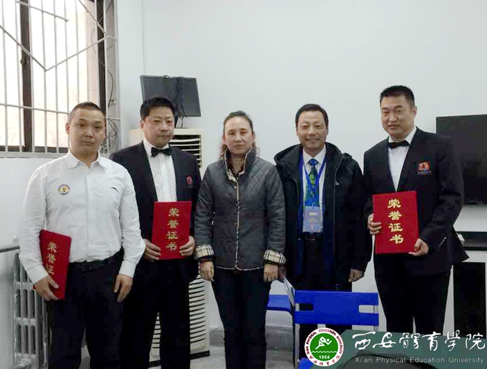 陕西的国际级裁判王珏(左二)、青海的国际级裁判张刚(右一)和天津的国家级裁判娄宏伟(左一)分别获得“优秀裁判员”的称号