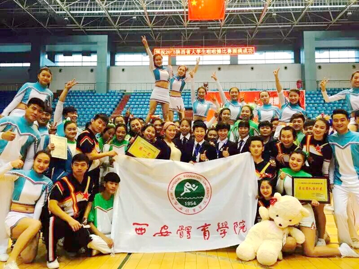 本网讯 由陕西省教育厅、省学生体协主办的2015年陕西省大学生啦啦操锦标赛于11月23日—24日在陕西师范大学上林体育馆举行,省内近20所高校参加了本次比赛,我院代表队发挥出色,取得优异成绩。