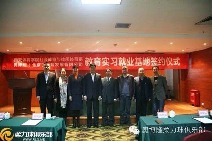 随后,郑智伟董事长与郑文海主任代表双方签订就业实习基地合作协议书,郑文海主任向奥博隆(北京)体育发展有限公司郑智伟董事长授牌,双方领导合影留念。签约仪式后,双方还对今后进一步的合作方式、形式进行了商谈并达成了多项合作意向。