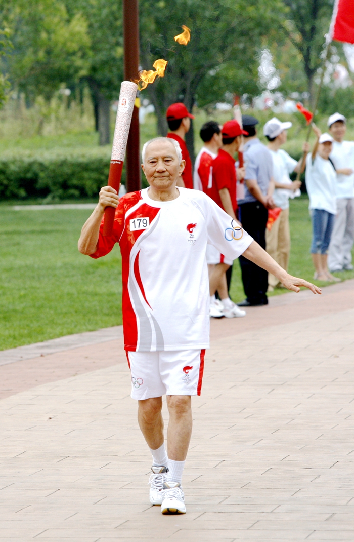 2008年,郭老以96岁高龄担任北京奥运会西安火炬传递第179号火炬手
