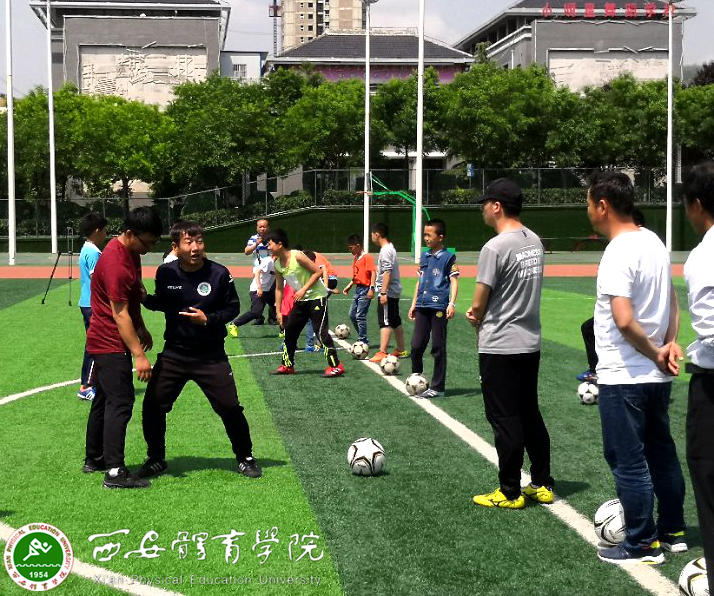 足球学院教师席海龙为城关中学师生讲授足球传接球技巧
