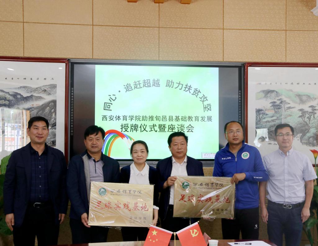 会上,杨柳、席海龙代表学院分别为旬邑县城关中学与逸夫小学授予“西安体育学院足球实践基地”牌匾。与会人员还就旬邑县体育教育发展现状及面临的问题和困难进行了深入讨论。