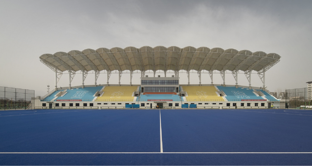 西安体育学院鄠邑校区“一馆四场”位于鄠邑新区东城南路两侧,北起吕公路,西起规划路,东至潭峪河。项目整体包含手球馆一座、曲棍球、棒球、垒球、橄榄球比赛场地共10块(含附属看台),以及配套的配电中心、污水处理、道路、景观绿化、信息化网络、运动员公寓、食堂等,总建筑面积约49万平方米。