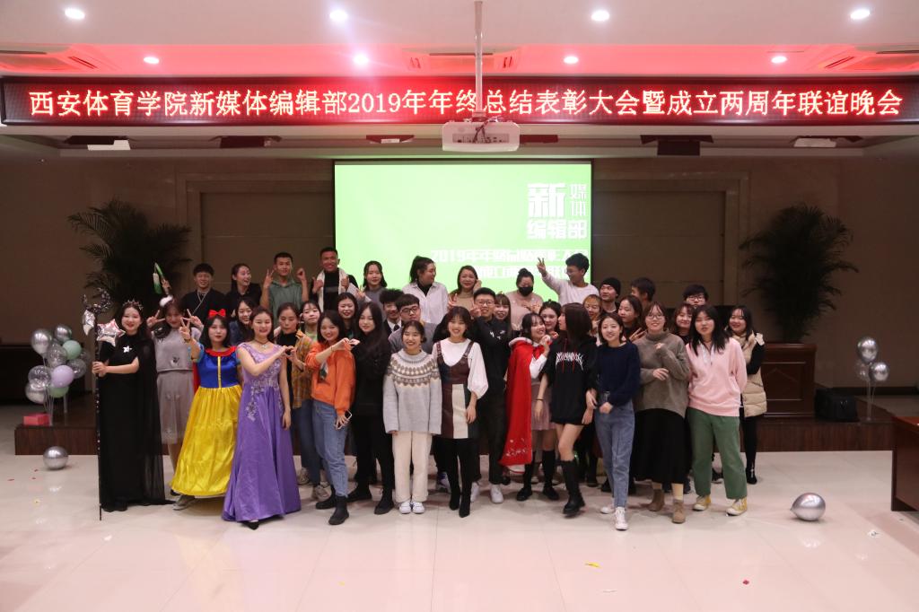 2019年12月30日,西安体育学院新媒体编辑部2019年年终总结表彰大会暨成立两周年联谊晚会在二号综合办公楼六楼报告厅举办。校党委宣传(统战)部副部长杨柳、新媒体中心副主任孙妍、理论教育科副科长张媛、新闻宣传科倪威胜、新媒体编辑部指导教师顾彬等老师出席本次活动。