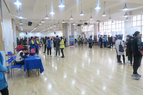 3月18日,西安体育学院2017届春季毕业生综合类校园招聘会在学院艺术馆一楼隆重举行。长安航空、香格里拉酒店、万国体育、西安恒新体育,弘健体育文化、上海链家等97家单位到场参会涉及教育、商务、管理、传媒、艺术、通讯、行政、策划等行业,体育相关企业逐年增多,为我院毕业生提供了就业岗位2073个,其中体育相关岗位占到总岗位数的86%。省教育厅学生处处长唐澍、副处长胡伟安,院长朱元利、党政办主任张朝阳、学工部部长王志刚、各系(部)负责人、年级辅导员也一同参加本次招聘会。