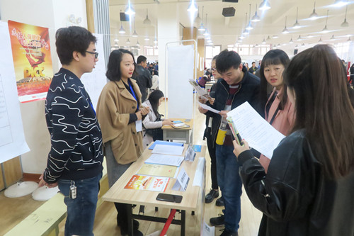 14时,快快乐动网络公司、青岛鹏腾国际有限公司、上海链家有限公司等3家单位在我院教学楼进行了现场面试和宣讲,详细介绍了公司概况、发展前景、面试要求、员工福利、入职培训等一系列问题,对有意向的同学进行了初步面试。