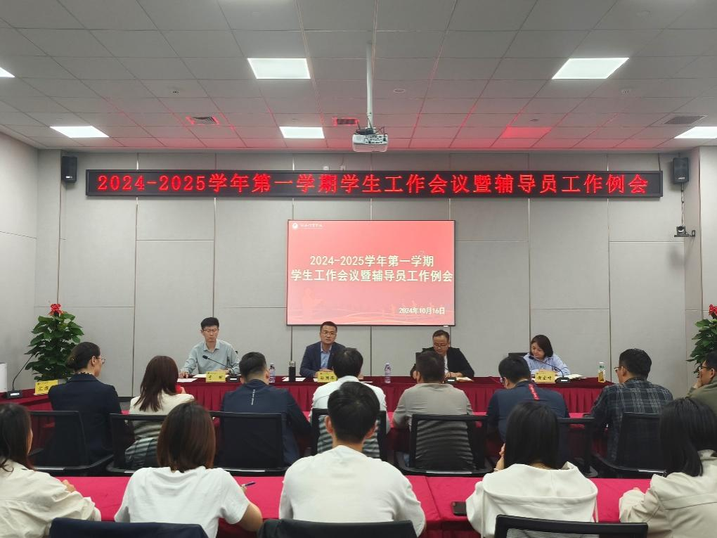 10月16日,学工部在鄠邑校区手球馆1楼会议室召开2024-2025学年第一学期学生工作会议暨辅导员例会,全体专兼职辅导员、学工部、校团委全体人员参加本次会议,会议由学工部部长马国华主持。