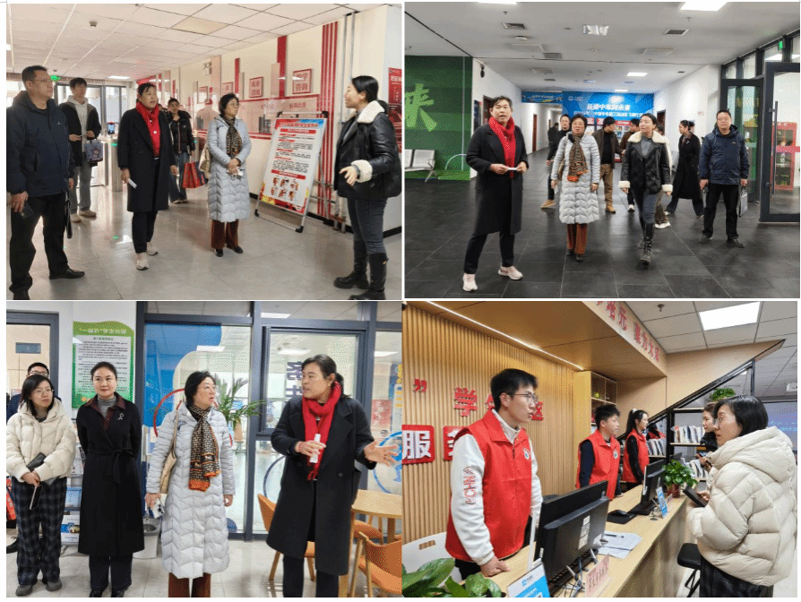 随后,调研团队实地走访了一站式学生社区1号、7号学生公寓楼,重点考察了社区育人阵地建设与网格化管理及社区场域空间,直观感受我校在学生社区空间打造、服务下沉等方面的实践成果。随后在“一站式”学生社区综合事务大厅,社区自管会同学向调研团队介绍了我校社区事务办理、权益服务、文化活动等功能,对大厅“一站式服务、一体化育人”的运行模式给予关注。