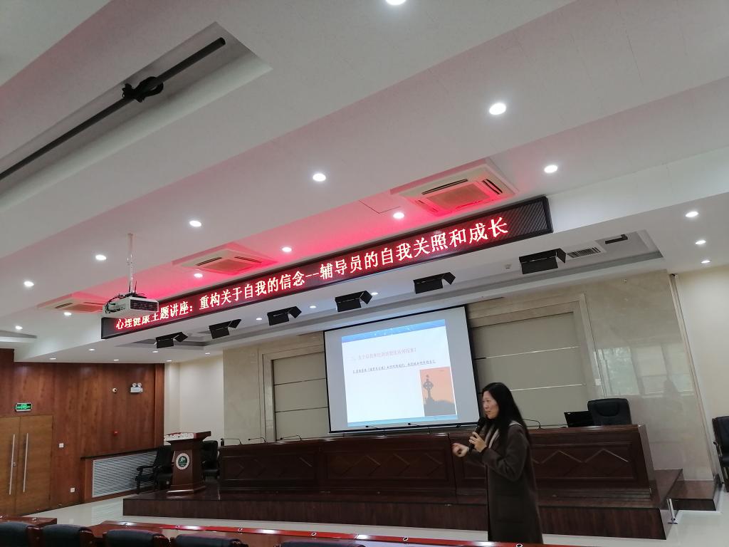 11月8日,心理中心邀请王翠萍老师在二号行政楼6楼会议室面向全体辅导员开展了《重构关于自我的信念—辅导员的自我关照和成长》的讲座,旨在培养辅导员们的自我信念、自我关照和自我成长。本次讲座持续一个多小时,王老师通过现场讲解与互动,赢得了辅导员们的强烈认同,促进了辅导员对自我的深刻认识,为辅导员的自我成长提供了指导,于此同时培养了辅导员在日后的生活中合理运用所学知识保持积极的心理状态,乐观自信地迎接生活中的每一次挑战。