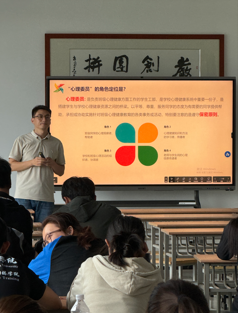 活动期间,我校专职心理咨询师苏丹宁以“筑牢心理健康防线,共创和谐校园环境”为题,围绕“心理健康教育资源与工作职责、心理委员互助技术、心理健康信息的识别与收集、心理健康主题班会”四个方面向学生开展了讲座。心理健康中心主任刘葵从心理健康中心人员构成、场地设备情况、主要工作职责以及心理咨询的功能、原则等方面为到访的学生进行了介绍。刘老师通过举例引导学生消除病耻感。还向大家介绍了一个心理学知识——创伤后应激障碍。