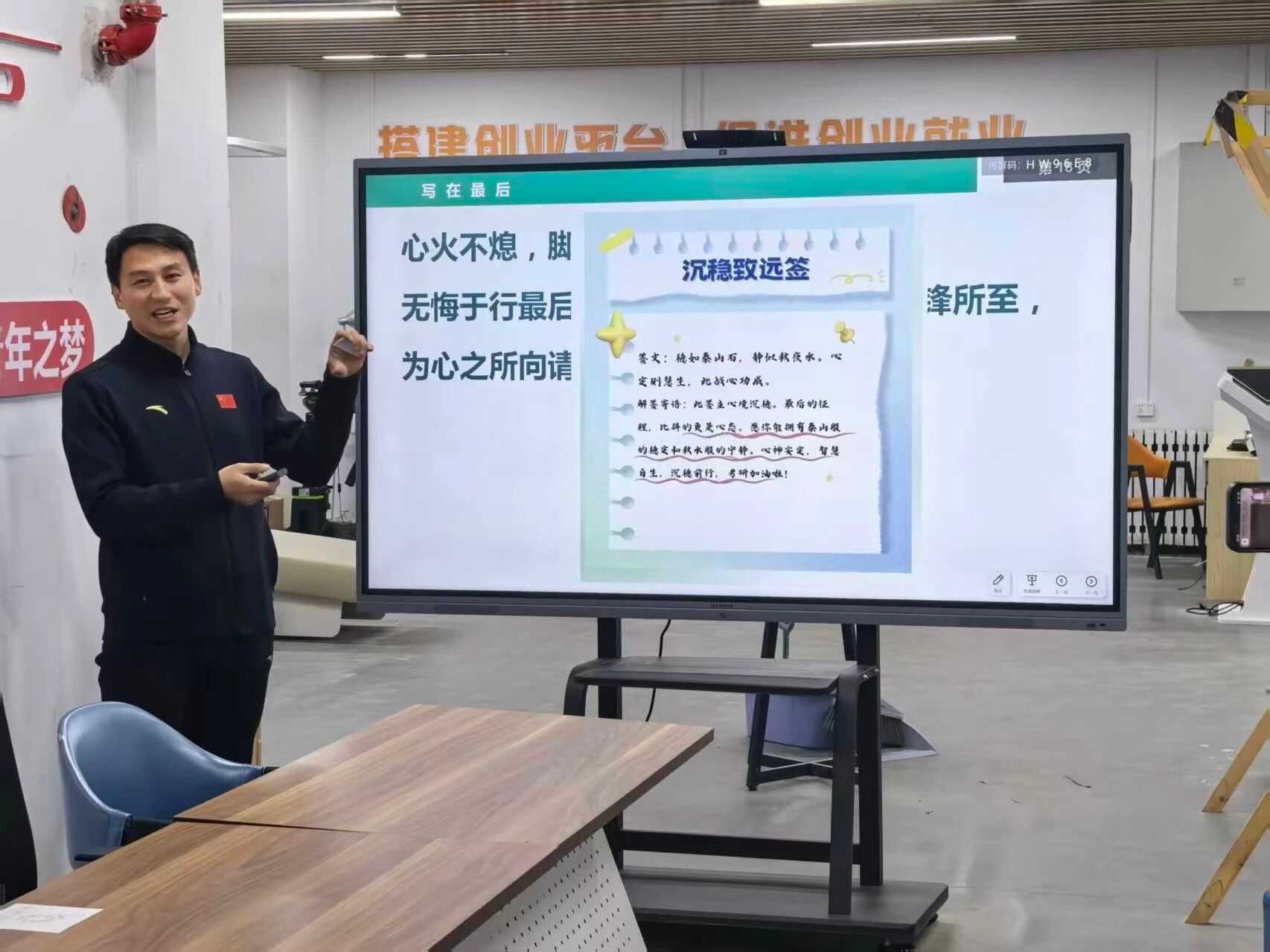 在互动环节,除答疑交流外,特别设置马克笔涂画解压小游戏,同学们手持色彩各异的马克笔,在专属画纸上自由创作,通过线条勾勒、色彩填充释放备考压力,现场充满轻松愉悦的氛围,让大家在趣味互动中放松身心。