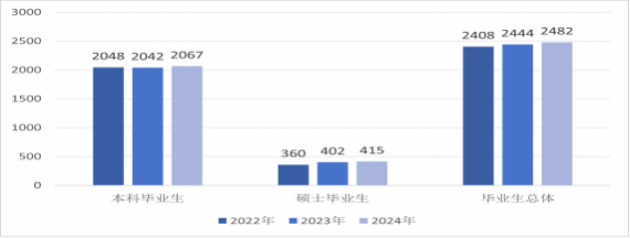 毕业生基本状况的研究是高校毕业生就业质量研究的基础,了解毕业生的规模与结构有助于全面分析就业质量。通过2024届毕业生的规模、性别结构、学院分布、生源地结构以及毕业去向落实率的深入分析,可以为后续的就业质量评估提供有力支持。本篇将从毕业生规模与结构、总体毕业去向情况、本科及硕士毕业生的具体去向落实率等方面进行详细分析,为学校就业工作的改进和优化提供参考依据,对此报告进行以下分析。