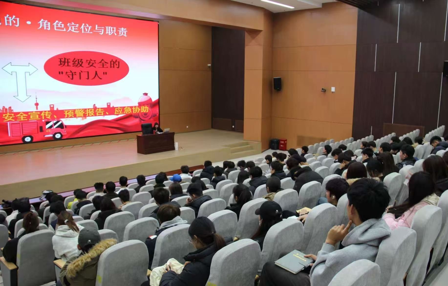 为深化“一站式”学生社区育人体系建设,切实筑牢校园安全防线。2025年11月27日中午,在教学楼三楼报告厅我校开展了“一站式”学生社区安全专题培训。本次培训由武术学院学工办主任王华老师主讲,全校各宿舍层长及各班生活委员参训。王华老师为参训学生骨干送上了一堂全面系统、实用性强的安全素养提升课。