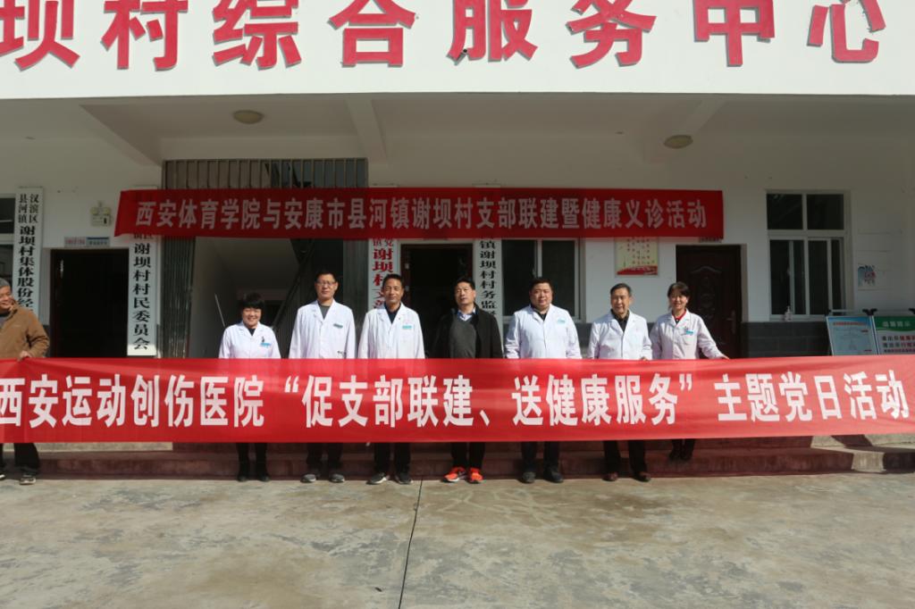 2021年11月18日,由运动健康科学学院党委书记刘勇带队,西安运动创伤医院内科、外科、骨伤科、五官科医生及护理等七名医务人员携带超声、心电图,血糖仪等仪器设备前往安康市县河镇谢坝村,为村民进行义诊活动。