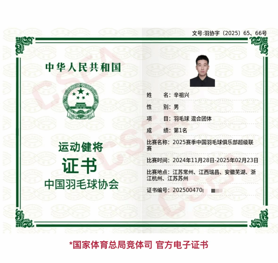在最新公布的羽毛球健将级运动员名单中,西安体育学院运动训练学院学子辛祖兴以其杰出的表现成功入选,这标志着他在羽毛球竞技领域已达到一个新的高峰。