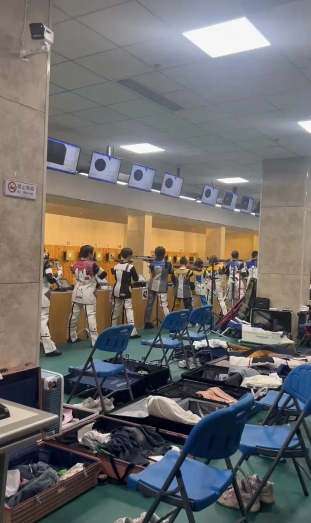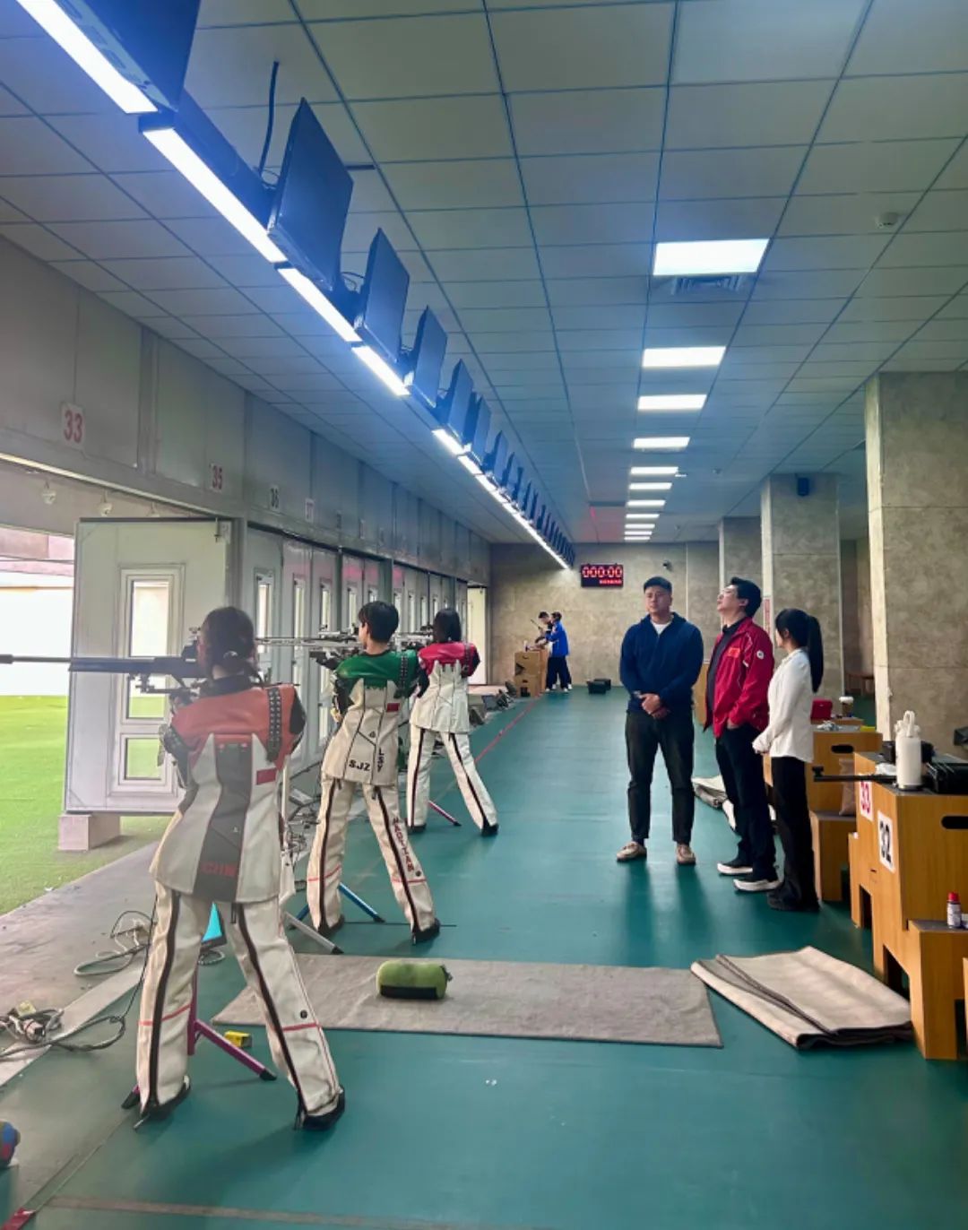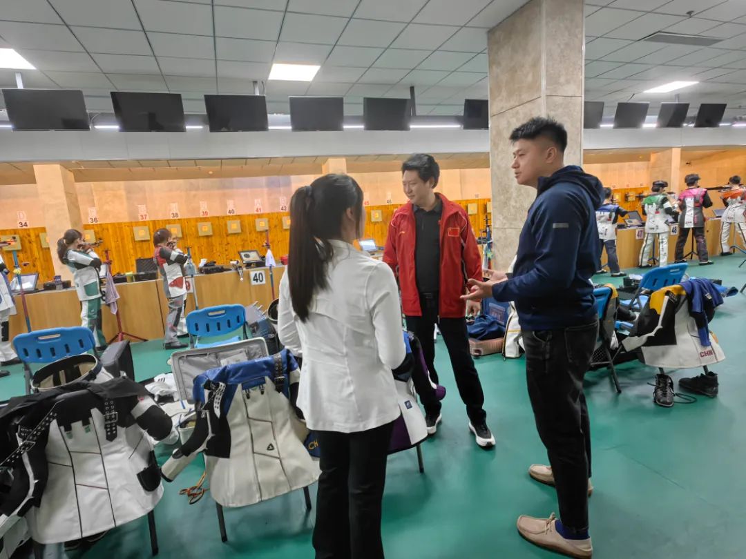 2024年10月15日,西安体育学院2021届辅导员王涛老师来实习地点视察工作,石家庄市射击运动业余学校校长刘洪磊带领王涛老师进行实地参观,进入射击场馆内,映入眼帘的是一楼的25米手枪速射慢射馆,刘校长为王涛老师大致讲解了一下射击场的整体构造以及训练现状。随后参观了二楼的50米步枪场馆,运动员们正在进行步枪三姿的立姿实弹射击,刘校长和王涛老师就运动员训练与升学问题进行了讨论。最后参观了负一楼的气枪馆,在这里训练的运动员人数是最多的,刘校长为王涛老师展示了射击运动员训练的服装装备,以及简单的射击原理。