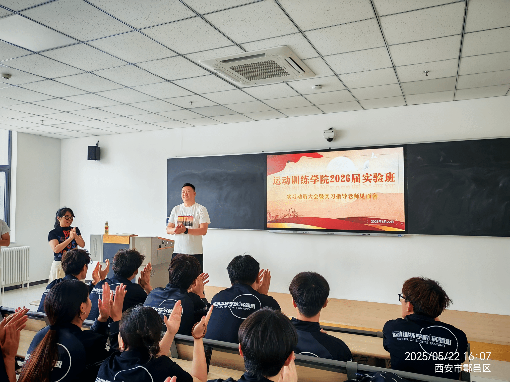 为帮助2026届实验班学生明确实习目标、做好实习准备,同时搭建学生与实习指导老师沟通的桥梁,2025年5月22日至23日,运动训练学院2026届实验班实习动员大会暨实习指导老师见面会在教学楼举行。运动训练学院实验班辅导员王慧颖老师、实习指导老师许老师和杨老师以及2026届实验班全体学生参加了此次会议。
