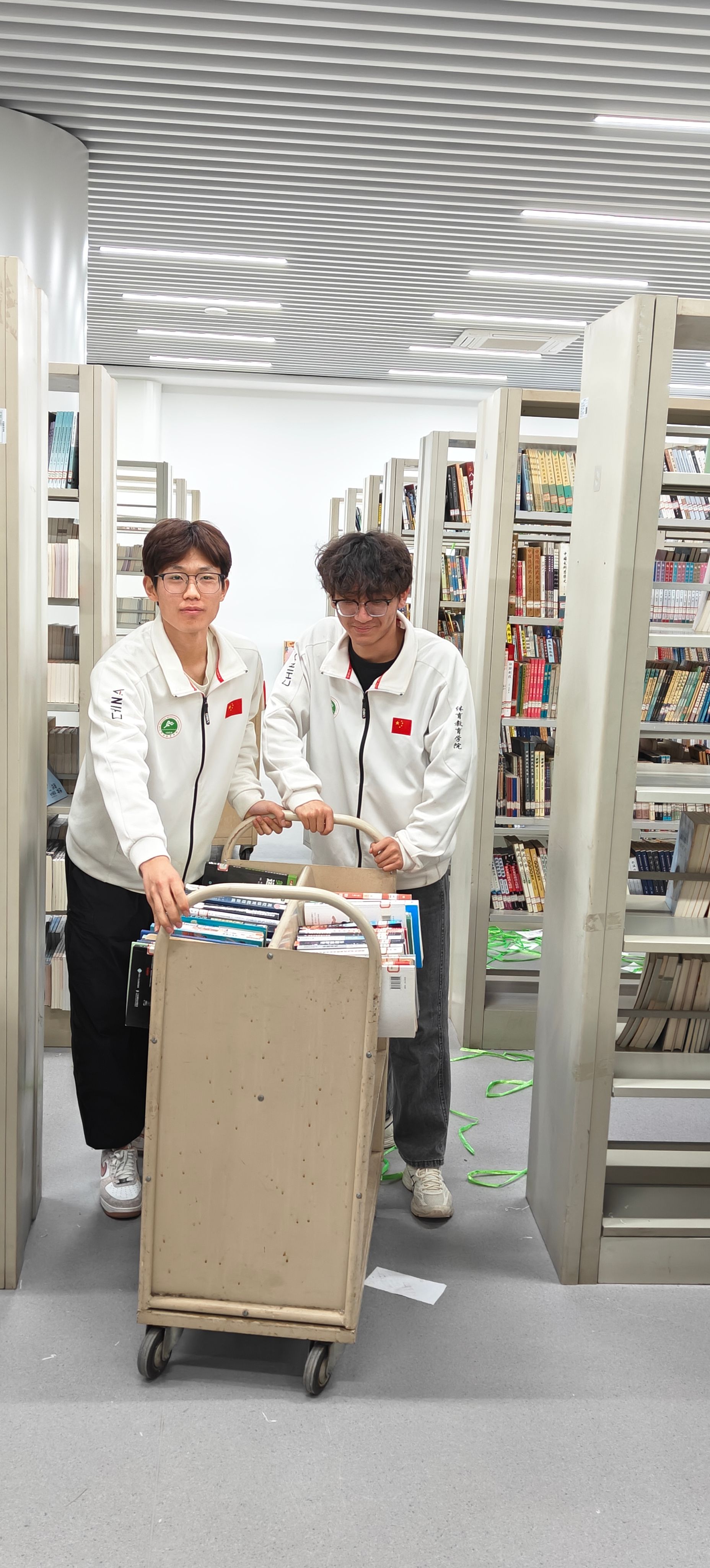 活动期间,24级体教志愿者们在工作人员的组织下迅速投入到紧张有序的工作中,有的志愿者负责书籍上架、有的志愿者负责整理书籍,但他们面对堆积如山的书堆和空荡荡的书架没有丝毫退缩。尽管摆放整理工作繁琐又辛苦,但志愿者们始终保持着高度的热情和耐心,现场洋溢着团结协作的良好氛围。