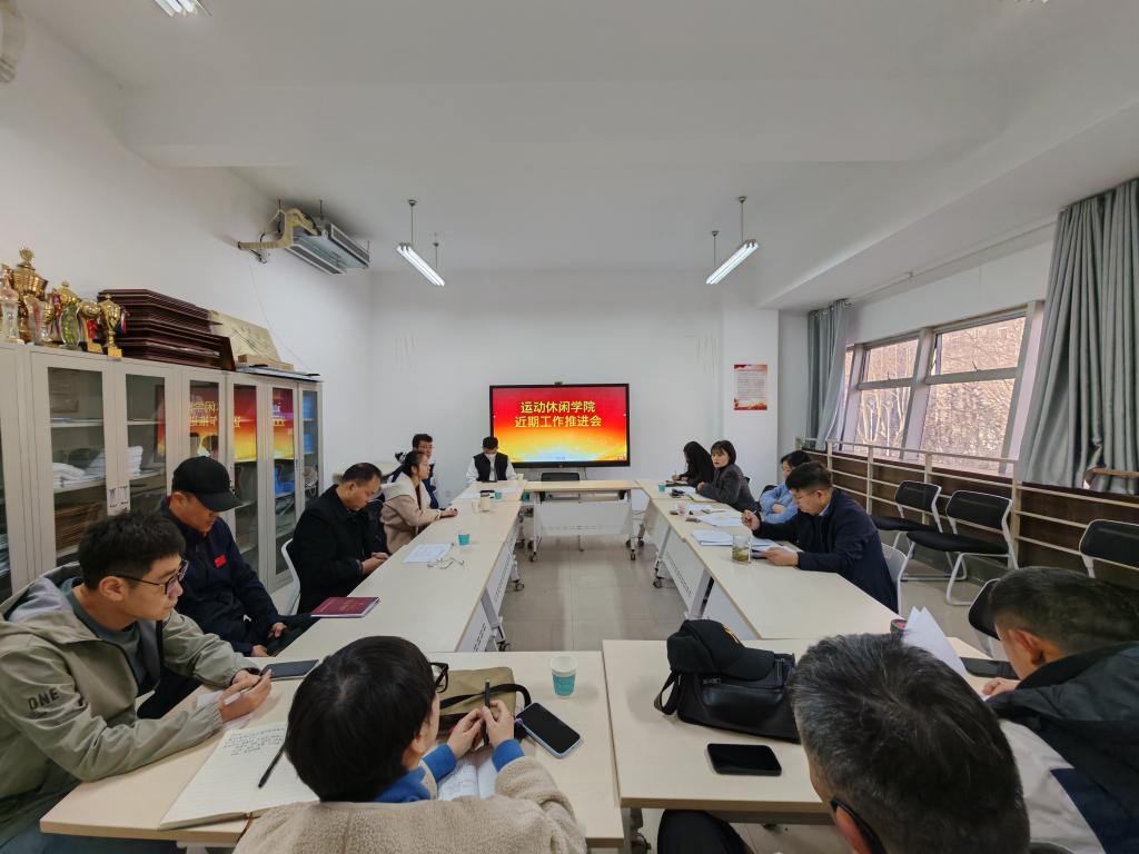 2024年3月20日8:30,在我院会议室召开了运动休闲学院近期工作推进会,党政班子,科级干部,支部书记,教研室主任及专业负责人参会。学院院长任超学首先就近期工作进行了梳理通报,对专业培养方案的重要性进行了阐述,副院长胡婕婷对前期培养方案已经做得有关工作作了汇报,社会体育学专业负责人杨建设对该专业的培养方案的设计与制定提出了一定建议与期望,对当前的专业情况作了简要讲解。休闲项目专业负责人李明就休闲专业的专业特点,市场需求,发展前景以及当前存在的问题作了详细汇报,给于了一定建议。