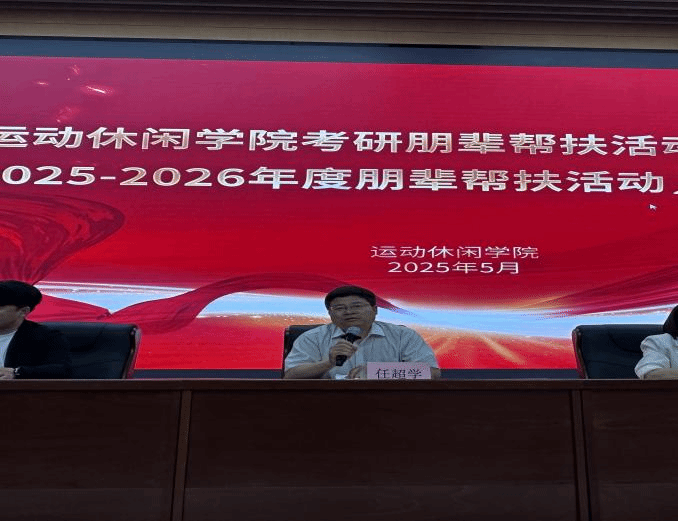 为深化学风建设,凝聚榜样力量,5月16日上午10点,西安体育学院运动休闲学院在鄠邑校区图书馆三楼隆重举行2024—2025年度考研朋辈帮扶表彰大会暨2025—2026年度帮扶活动启动仪式。学院党政班子成员、党政办、学工办、全体专兼职辅导员,以及2025届优秀考研学子、2026届全体本科生和新一届朋辈帮扶导师共同参与,党政办主任董鹏举主持会议。