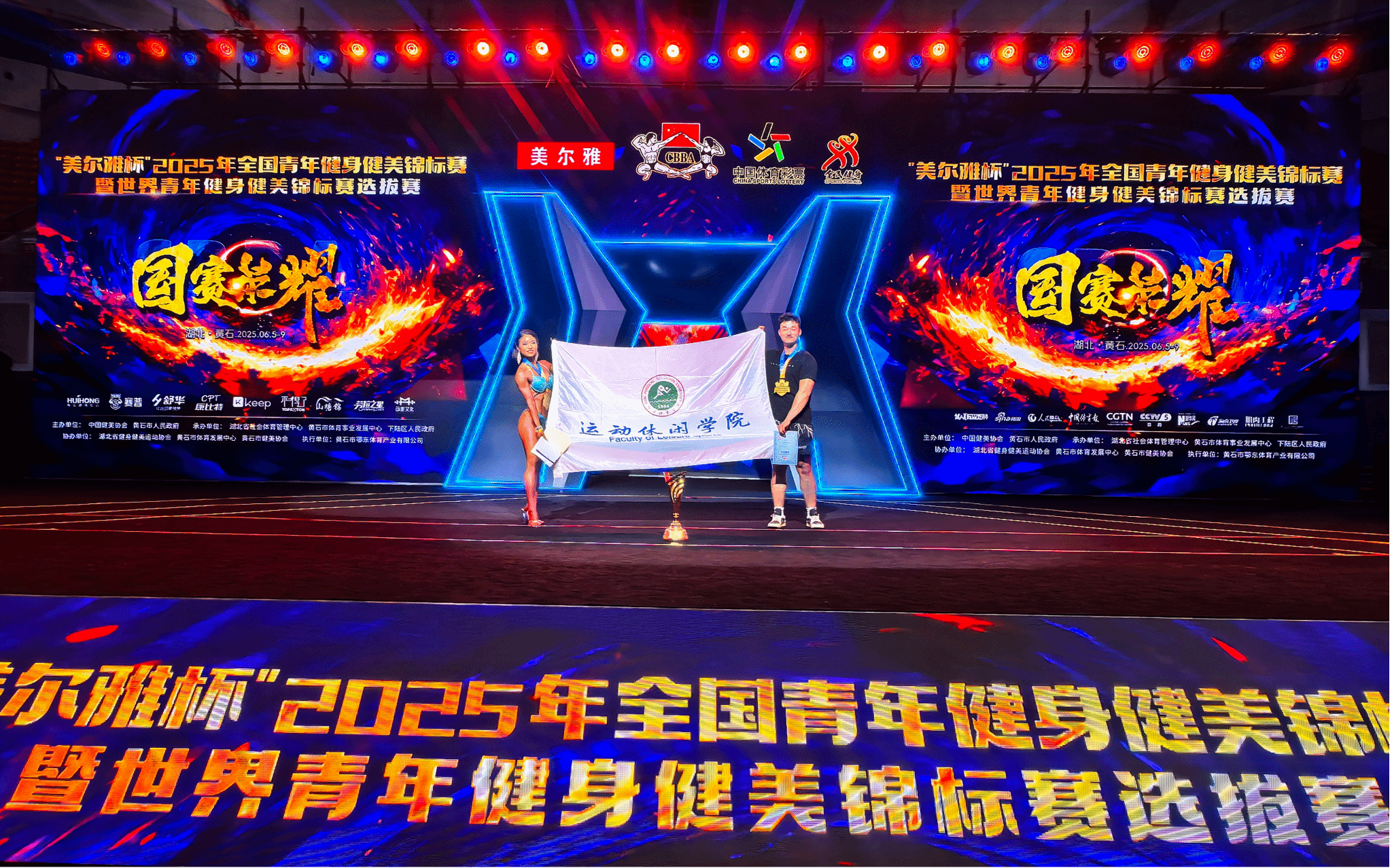 今日(2025年6月8日),从湖北黄石传来振奋人心的捷报!在备受瞩目的2025年全国青年健身健美锦标赛暨世界青年健身健美锦标赛选拔赛上,我校2022级运动休闲学院健身健美专项学生周熠以绝对实力闪耀赛场,一举夺得大学生组女子形体身高163(含)以下组冠军,并在此基础上一路高歌猛进,最终加冕大学生组女子形体项目全场总冠军、青年组女子形体全场总冠军、荣膺最佳形体奖,闪耀全场!