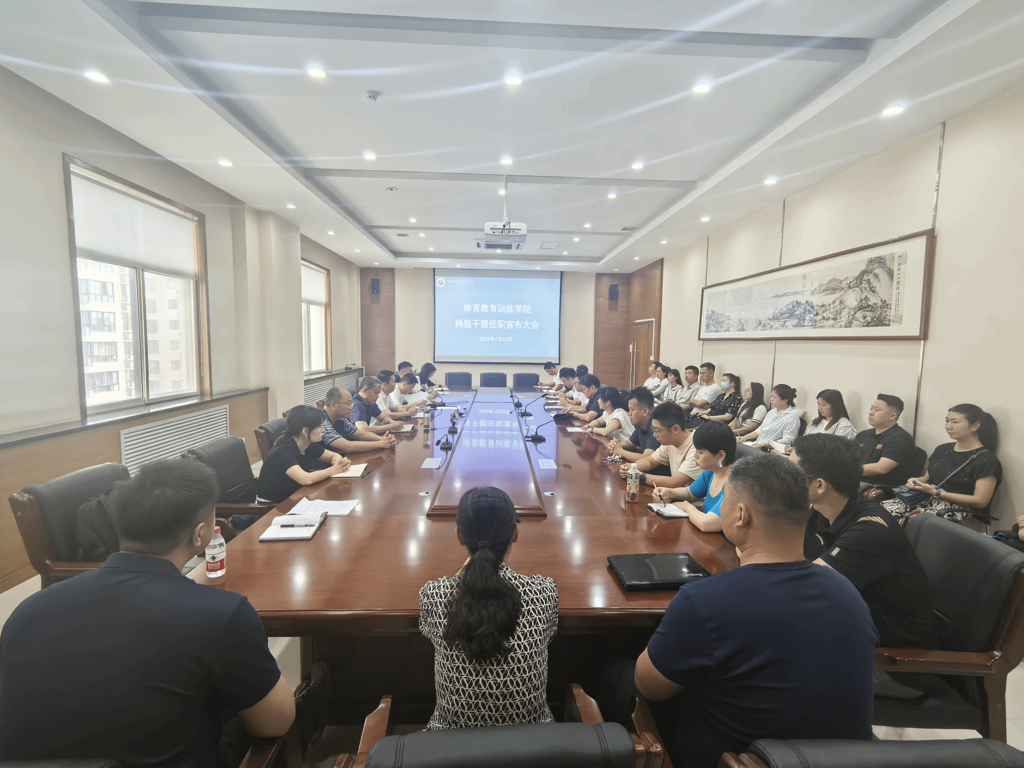 2025年7月22日9:00,体育教育训练学院在2号行政楼六楼会议室召开科级干部任职大会。学院党政领导班子成员、新任科级干部、各教研室主任、副主任参加了本次会议,会议由党委书记卢喆主持。