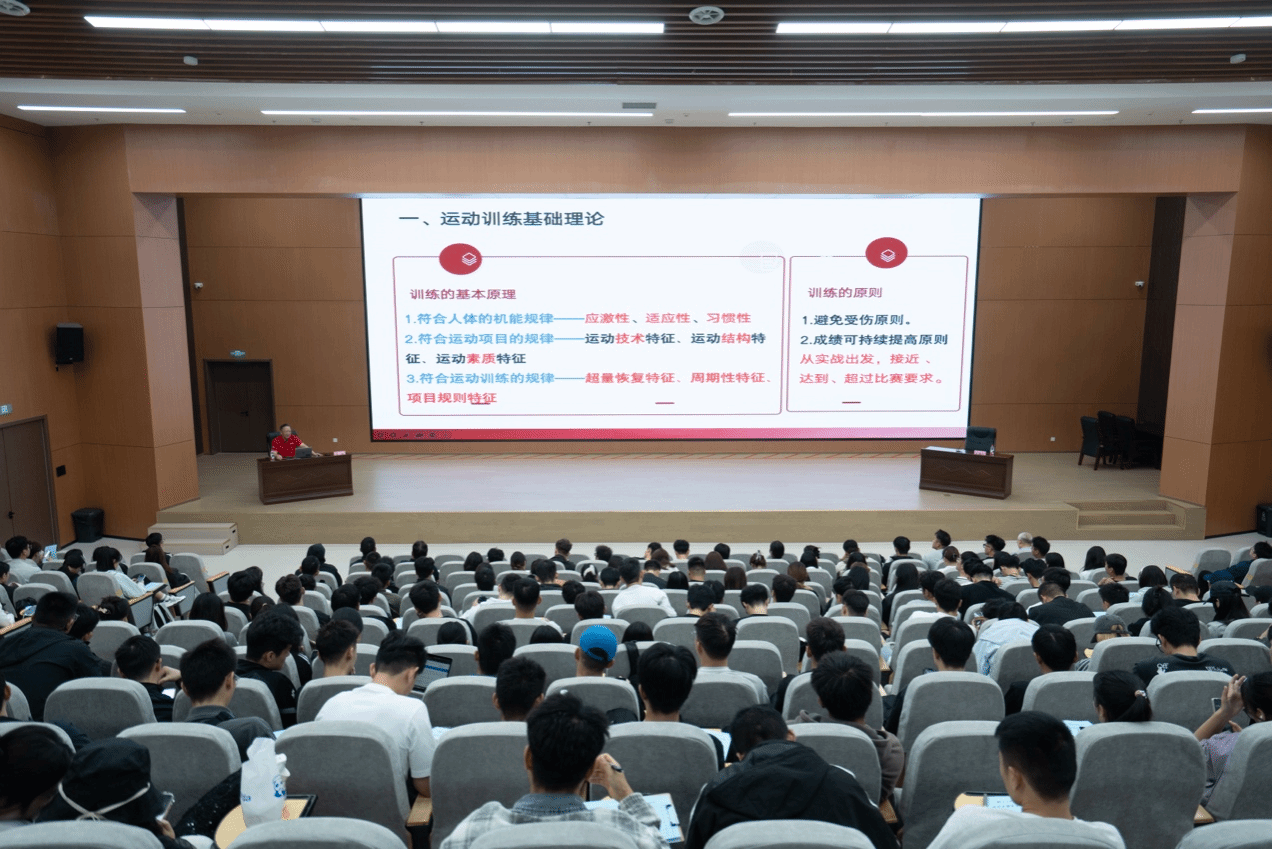 在报告过程中,苏教授不仅理论阐释严谨清晰,还结合多年教学与训练实践,深入浅出地讲解了如何将科学理念转化为具体训练方案,帮助学生和教师进一步理解“从实战出发”的训练原则。他指出,科学训练不仅要追求成绩的持续提高,更要注重避免运动损伤,实现运动员的长远发展。