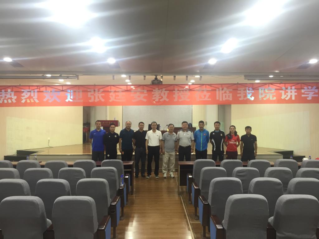 2017年6月7日上午10: 00在教学楼一楼报告厅,应运动训练系的邀请,北京体育大学博士研究生导师、中国首位足球博士、首届全国校园足球专家委员会委员,中国大学生体育协会足球分会副秘书长及教学科研委员会主任张廷安教授做客西安体育学院,做了题为《提高校园足球运动水平之我见》的专题讲座。运动训练系主要负责人、足球教研室教师和运动训练系部分师生代表参加了此次讲座。