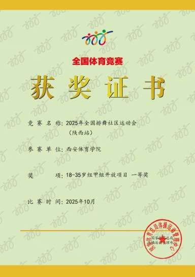 2025年10月12日,以“奋进新征程·运动促健康”为主题的全国排舞社区运动会(陕西站)网络赛在西安市曲江第二小学顺利落下帷幕。由西安体育学院体育教育专业2022级与2023级健美操专项学生组成的排舞队,凭借扎实的专业功底与出色的现场表现,在高校组激烈竞争中脱颖而出,一举斩获多项一等奖,充分展现了西体学子卓越的体育素养与艺术表现风采与艺术活力。