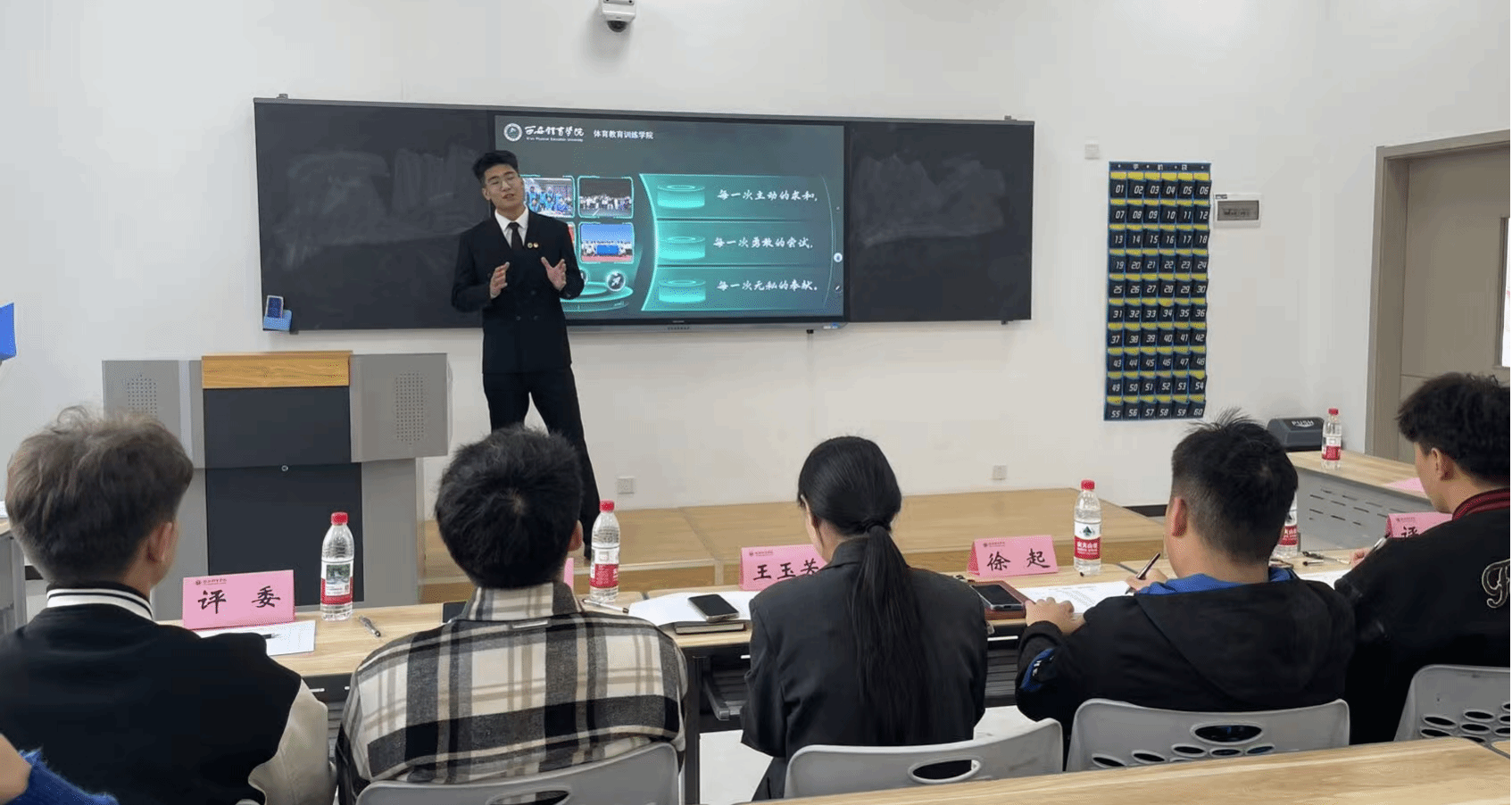 最后,体育教育训练学院年级主任宗月民在赛后总结中强调 “本次活动是通过扎根专业人才培养开展的,选手们以演讲比赛为载体深研理论思想认知,传播体育精神,赋能同学们的成长成才,以此进一步增强了同学们对专业的认同感和自豪感,提升专业了学习的热情与兴趣,为职业道路注入新的活力和动力,期望成为具有 ‘能练会教、能说会讲’体育核心素养的新时代体育人才。”