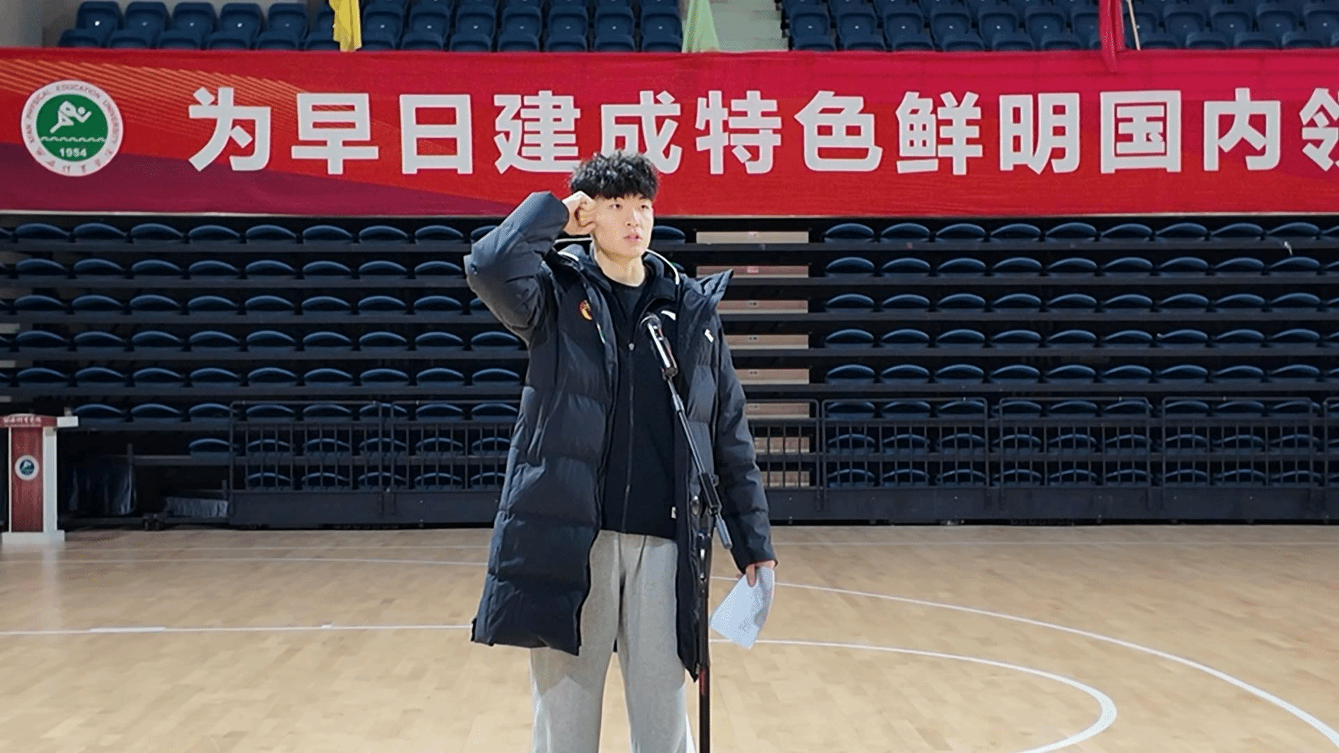 运动员代表赵子超与裁判员代表薛子萱先后登台庄严宣誓,为赛事拉开公正竞技的序幕。赵子超代表全体运动员承诺,将严格遵守比赛规则,服从裁判判罚,尊重对手、团结同伴,以热血诠释青春,用汗水挑战自我,全力展现体育学子的卓越风采。薛子轩则代表全体裁判员表态,将坚决服从组织安排,秉持严格执法、公正裁判的原则,为赛事营造公平有序的竞赛氛围,全力保障比赛顺利进行。