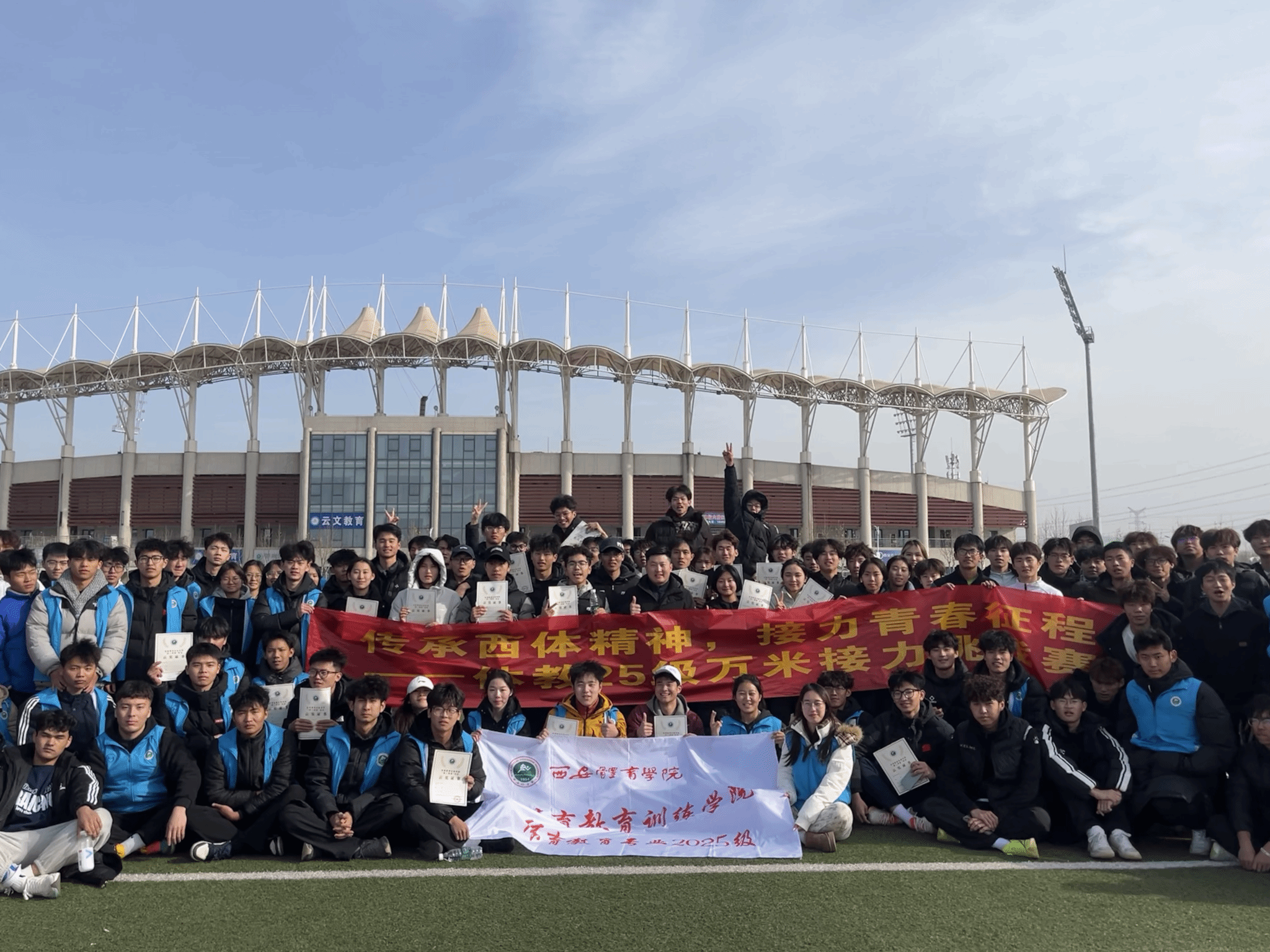 为深化“以体育人”育人理念,搭建专业实践与团队协作平台。2025年12月24日,体育教育训练学院体育教育专业2025级“传承西体精神,接力青春征程”主题万米接力挑战赛在学校田径场正式开赛,12个班级的组成11支比赛队伍,每组10名选手,指导老师张远悉心督战,全程在场。