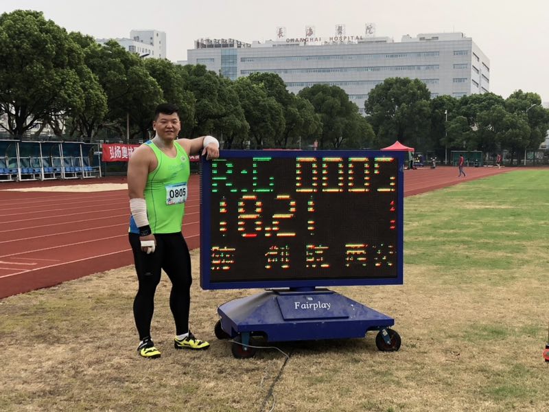 我系2015级学生陈剑在此次大赛的铅球项目比赛中以18.21米的成绩夺得了金牌,并且打破了18.11米的全国体院铅球项目纪录。
