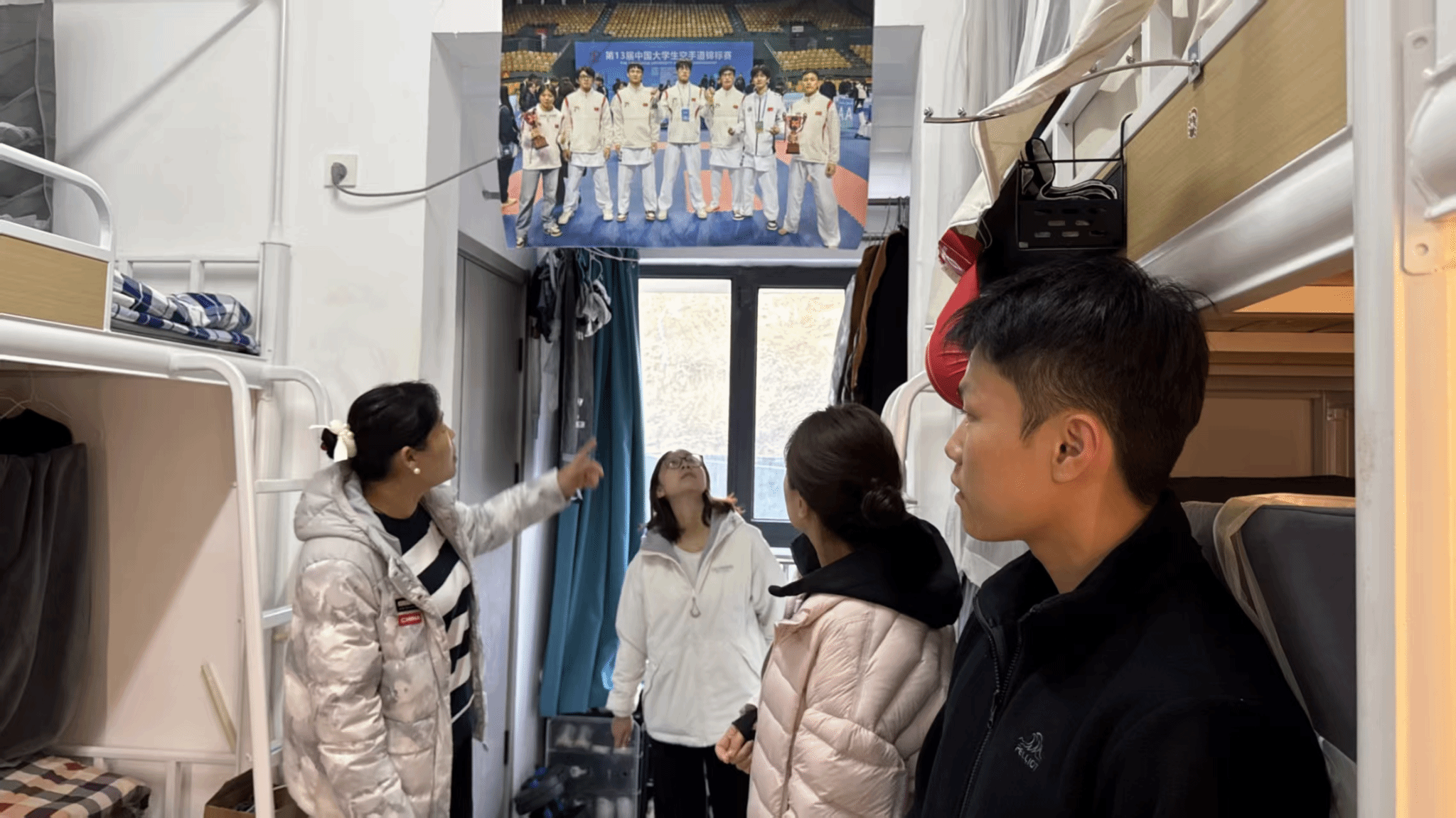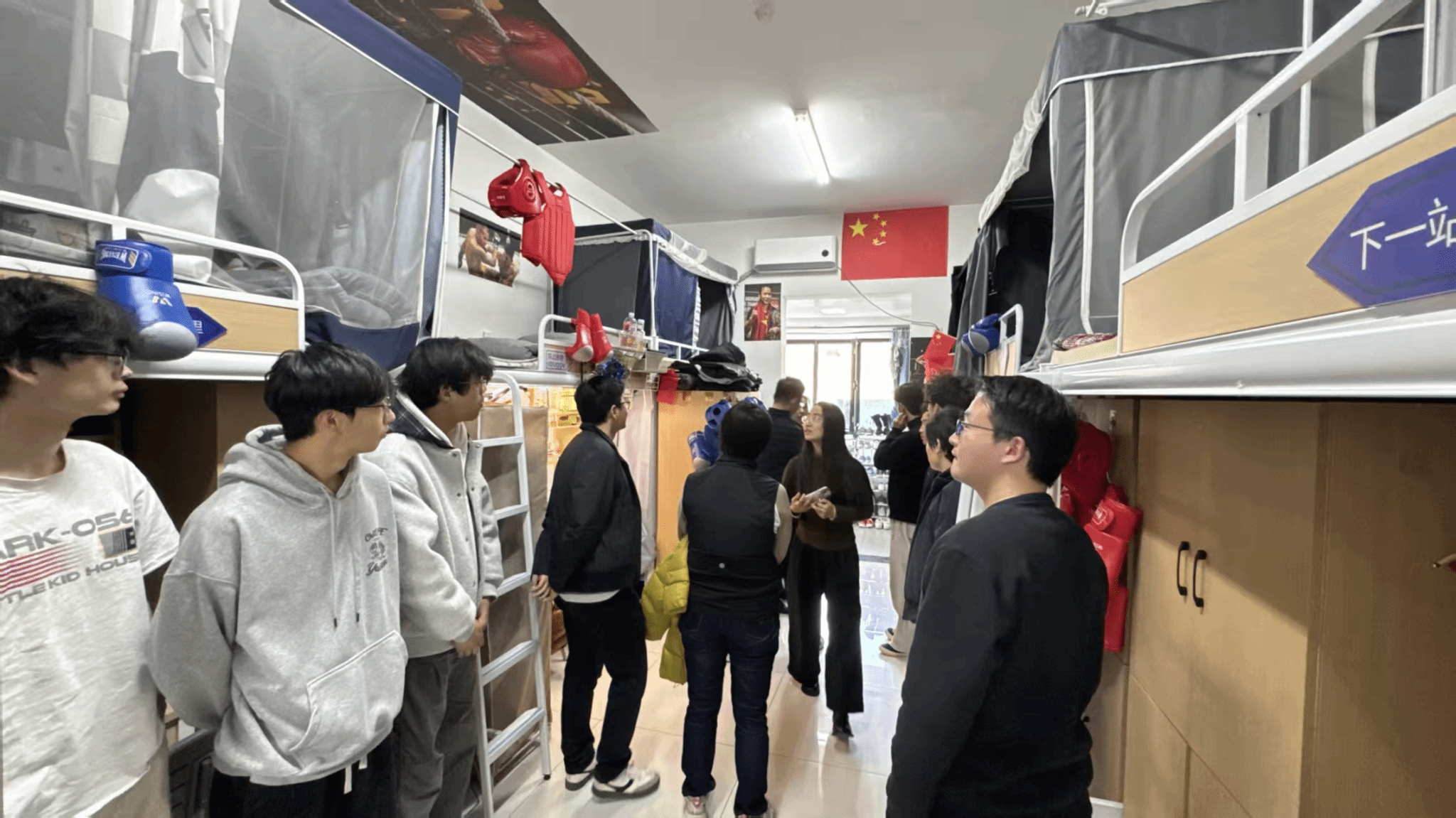 在年级辅导员管融资、袁景峰的向导下逐一观摩了体育教育专业2024级学生宿舍,宿舍文明卫生建设充分体现了辅导员在学生日常事务的管理水平和育人成效。本次活动以“学标杆、找差距、促提升”为核心,旨在通过全方位观摩,推动全校宿舍管理工作向内涵式发展迈进。