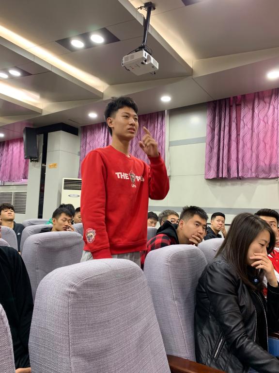 随后武洛生向学生全面介绍了从建系之初到学院的成立,运动训练专业走过了近五十年的发展历程,为新中国培养了2万余名体育专门人才。始终坚守着教育的初心,始终不忘人才培养的质量,坚持以学生成长成才全面发展为中心,期望同学们在新时代体育强国建设中会有更大的作为。最后为在座的学生提出了两点希望:一是要树立远大志向,励志前行;二是要刻苦学习,追赶超越。希望所有同学用发展的眼光看待学习的问题,树立付出必有回报的决心,好好解决学习中存在的困难和问题。