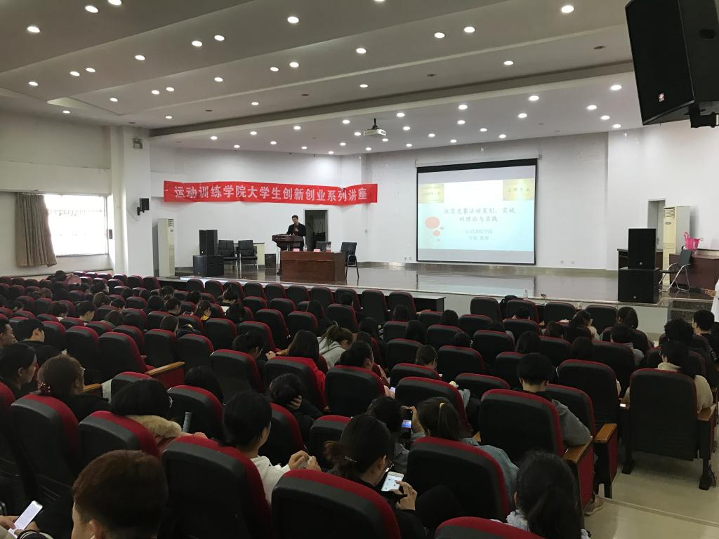 11月18日下午,运动训练学院在教学楼5楼报告厅召开了大学生创新创业系列讲座----《体育竞赛活动策划、实施的理论与实践》为主题的讲座。本次讲座主讲人为运动训练学院运动训练学教研室主任方程教授。2018级、2019级、实验班学生有400余名学生参加。会议由运动训练学院党政办公室副主任刘志云主持。