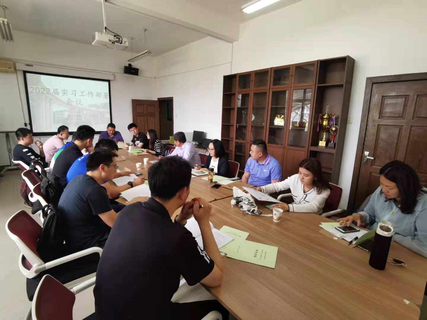 为深入做好运动训练学院2022届学生实习工作,5月19日下午2:30,运动训练学院在综合训练馆六楼会议室召开2022届实习工作部署会议。主要参会人员有运动训练学院院长武洛生、副院长郑峰、教学办公室副主任全乐、2018级年级主任于昕、2018级辅导员李丹及12名实习指导教师,会议由院长武洛生主持。