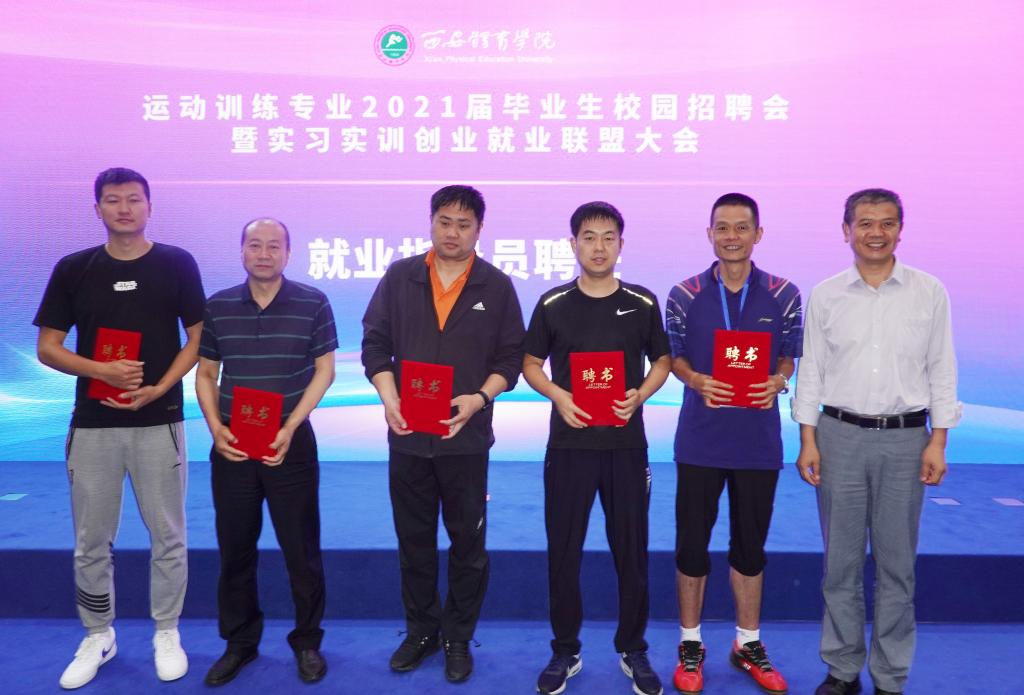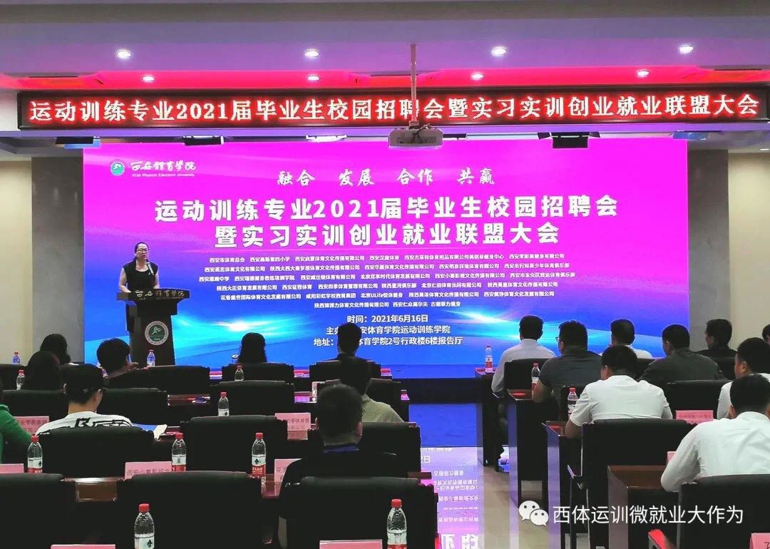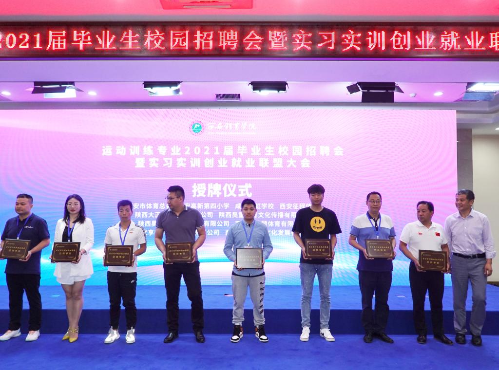 2021届毕业生校园招聘会暨实习实训创业就业联盟大会大会上,西安体育学院运动训练学院与22家企事业单位签订了实习实训创业就业战略合作协议,并为合作单位进行授牌。同时,为14名专业教师颁发了聘任证书,加强实习实训创业就业的实际效果。