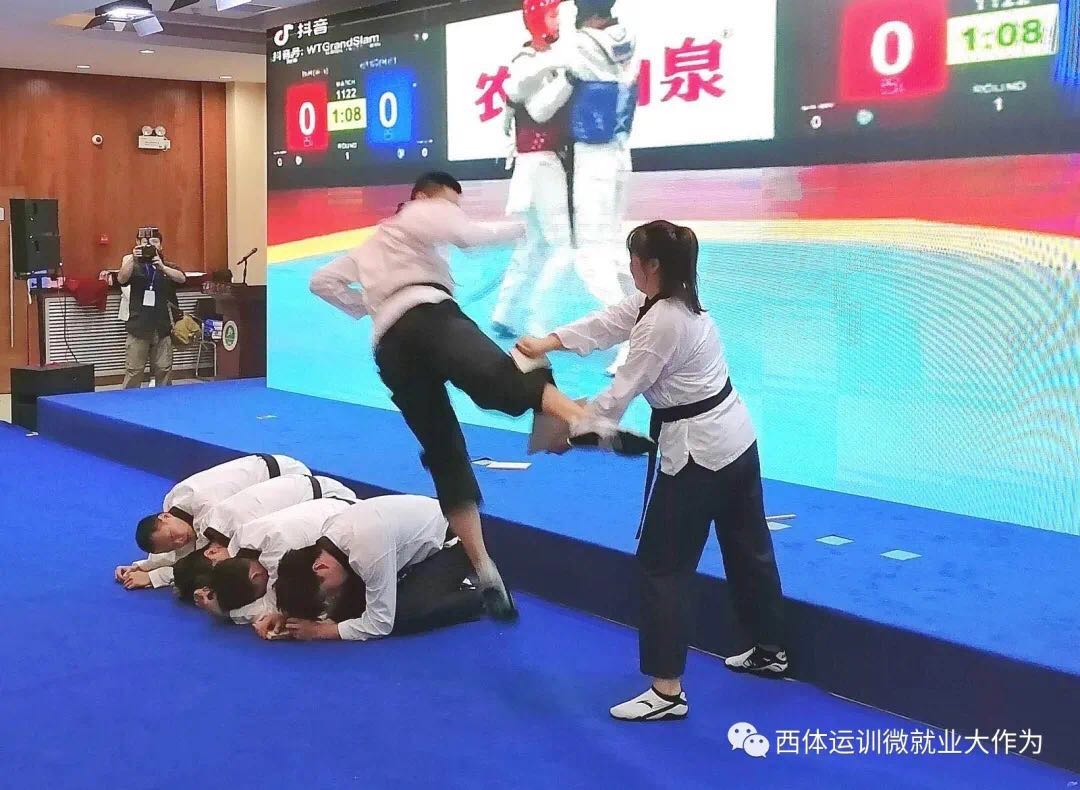 大会从艺术体操及跆拳道两场精彩纷呈的体育表演中拉开帷幕。大会伊始,运动训练学院党委书记王鑫对前来参加的各企事业单位负责人表示热烈的欢迎和诚挚的感谢。紧接着,通过运动训练学院宣传片使参会人员对运动训练学院发展、师资情况、专业分布、人才培养以及学生情况有了进一步的了解。后运动训练学院院长武洛生代表校、院领导向所有参会的招聘单位、应聘同学,向专程到现场指导招聘工作的各位领导,向关心支持我院发展、关心应届毕业生就业的各界人士,表示热烈的欢迎和衷心的感谢!表示此次大会是西安体育学院运动训练学院创新创业实践教育改革的积极探索,它标志着西安体育学院运动训练学院创新创业实践工作进入深度融合、互惠共赢的崭新阶段。