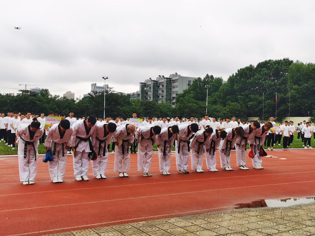 在艺术体操及跆拳道两场精彩纷呈的体育表演后,由裁判长冯俊彦宣布各班获得的名次。18级十一班获得一等奖,七班和八班获得二等奖,一班、九班、十班获得三等奖。院领导为获奖班级颁发了奖牌。