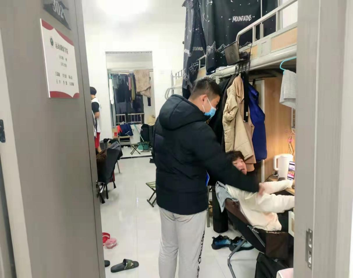 运动训练学院2021级四百多名学生全部在鄠邑校区,辅导员在疫情防控工作中,坚守职责,大多数同志是24小时在岗。他们带领学生干部,通过科学管理,有效开展工作,确保学生学习生活井然有序。年级办制定了疫情防控工作方案,积极组织学生干部做好每天日常打卡、核酸检测、查宿、督促学生上网课等一系列工作。并召开学生干部会议,成立各班心理委员,对部分同学进行心理疏导,并不定时与他们交流。