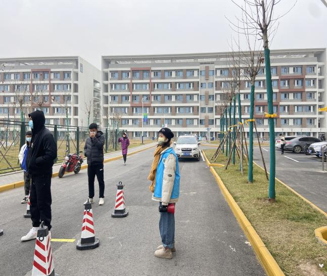 2021级年级主任王青在核酸检测现场进行指挥