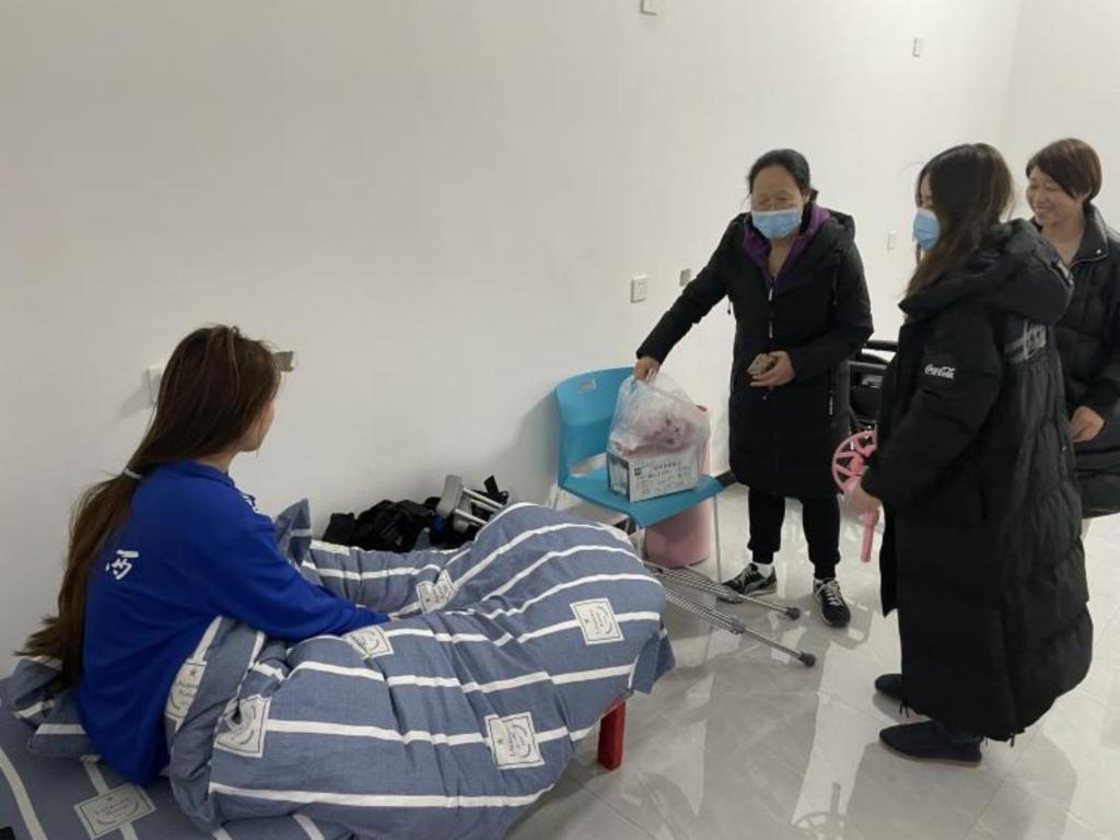 党委书记王鑫、重竞技教研室主任李艳、辅导员张文怡慰问学生