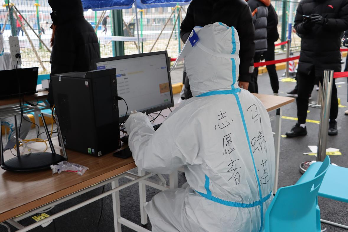 志愿者在核酸现场工作